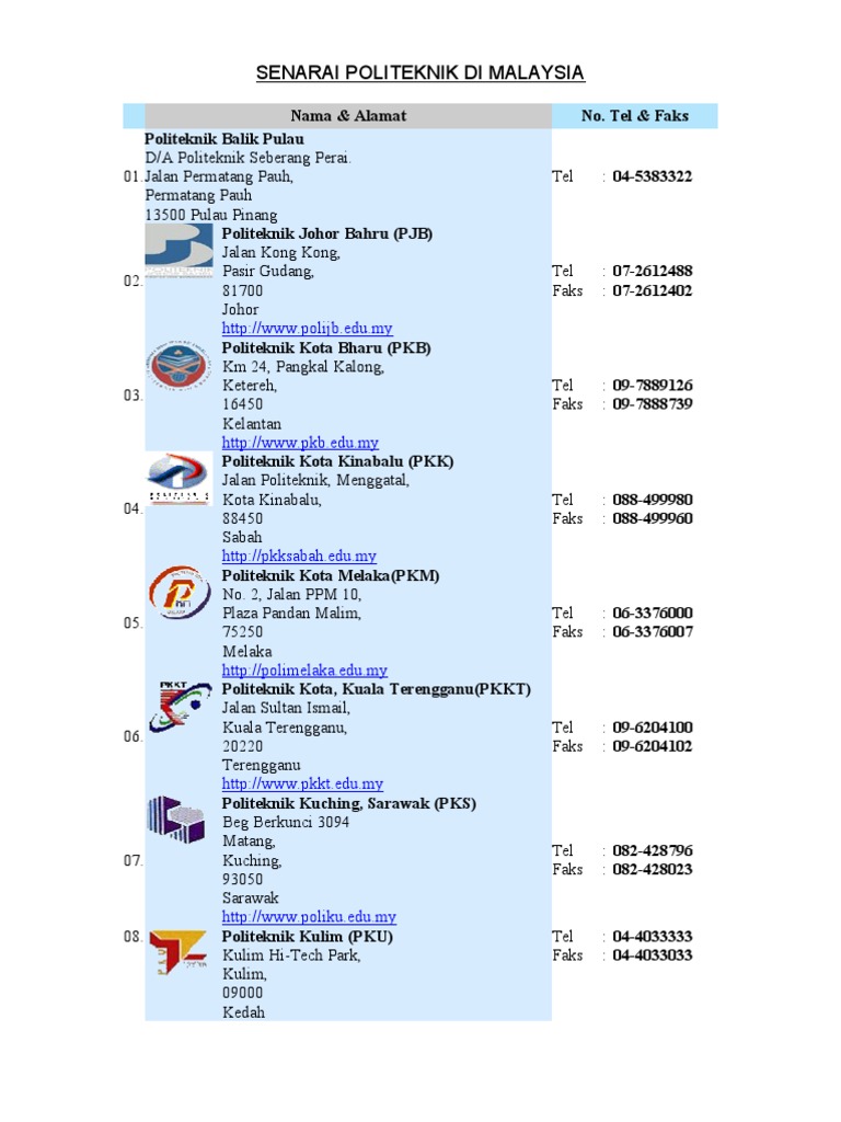 Page ke sekian kali di tubuhkan setelah di report senarai penipuan yang di laporkan oleh. Walaupun senarai ini dimonopoli oleh ahli perniagaan berketurunan cina dan india, terdapat juga orang melayu yang berjaya duduk sama tinggi dalam golongan elit negara kita. Senarai politeknik senarai politeknik yang diiktiraf di seluruh malaysia. Politeknik sultan abdul halim mu'adzam. Pengiktirafan | 10 politeknik malaysia dapat akreditasi sebanyak 10 buah politeknik di malaysia menerima pengiktirafan.